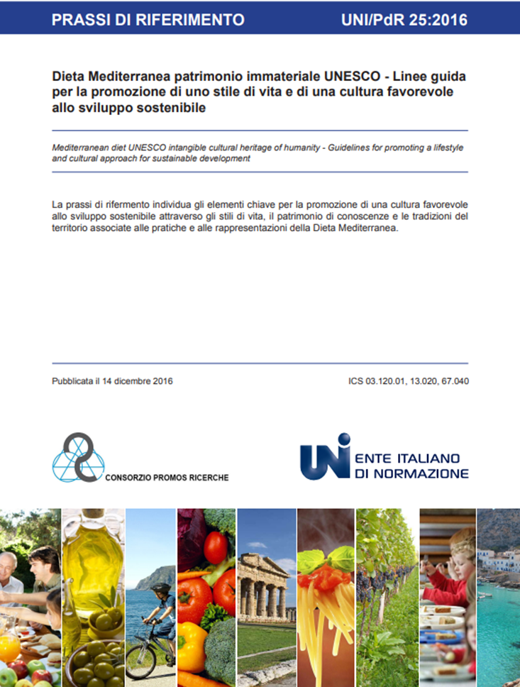 L’Ente italiano di normazione UNI ha recente pubblicato un documento contenente una prassi di riferimento dal titolo “Dieta Mediterranea patrimonio immateriale dell’UNESCO – Linee guida per la promozione di uno stile di vita e di una cultura favorevole allo sviluppo sostenibile”.